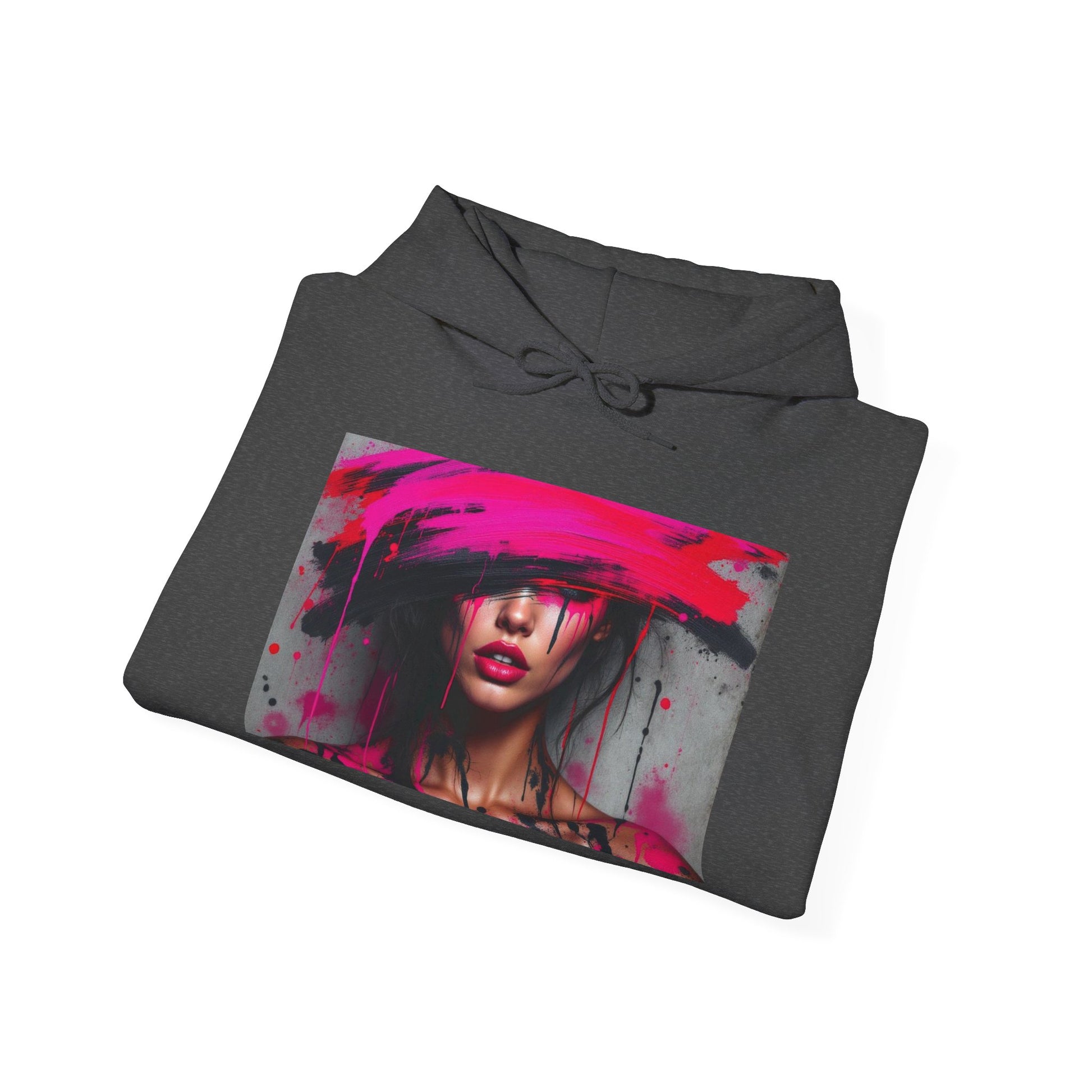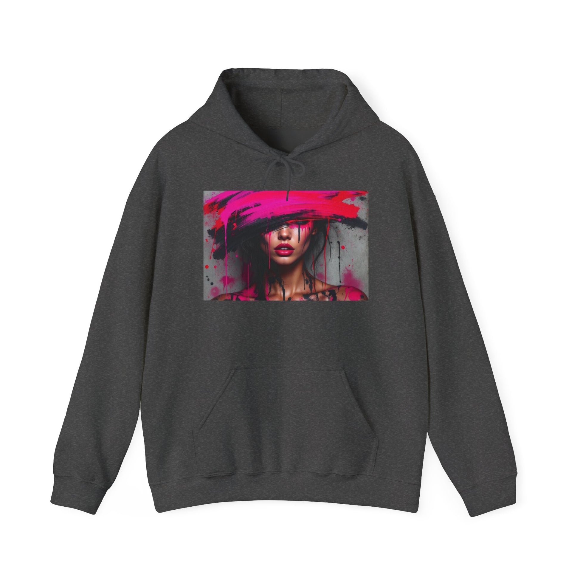 This cozy hooded sweatshirt carries a bold, painterly portrait across the chest — a striking blend of fuchsia, crimson and charcoal that reads like street art captured on fabric. The mid-weight, brushed 50/50 cotton-poly blend drapes softly and holds color well, so the image stays vibrant through wear. Wear it over a tee for late-night gallery hangs, layered on crisp mornings, or when you want a statement piece that still feels lived-in. The roomy kangaroo pocket and double-lined hood bring everyday comfort, while the tear-away label keeps the neckline itch-free. It’s for people who pick pieces that feel like mood pieces — expressive, slightly rebellious, and quietly confident.