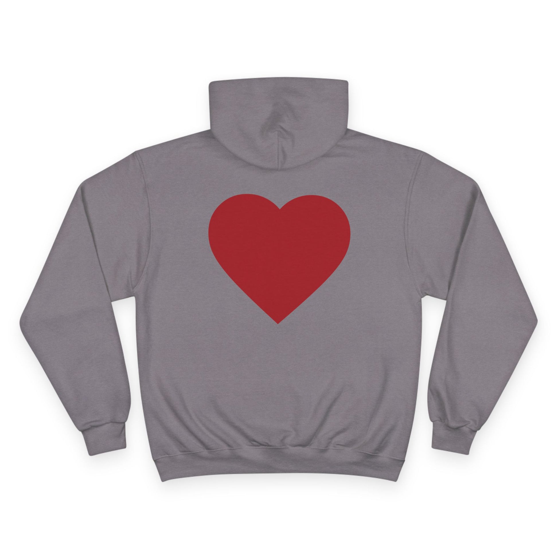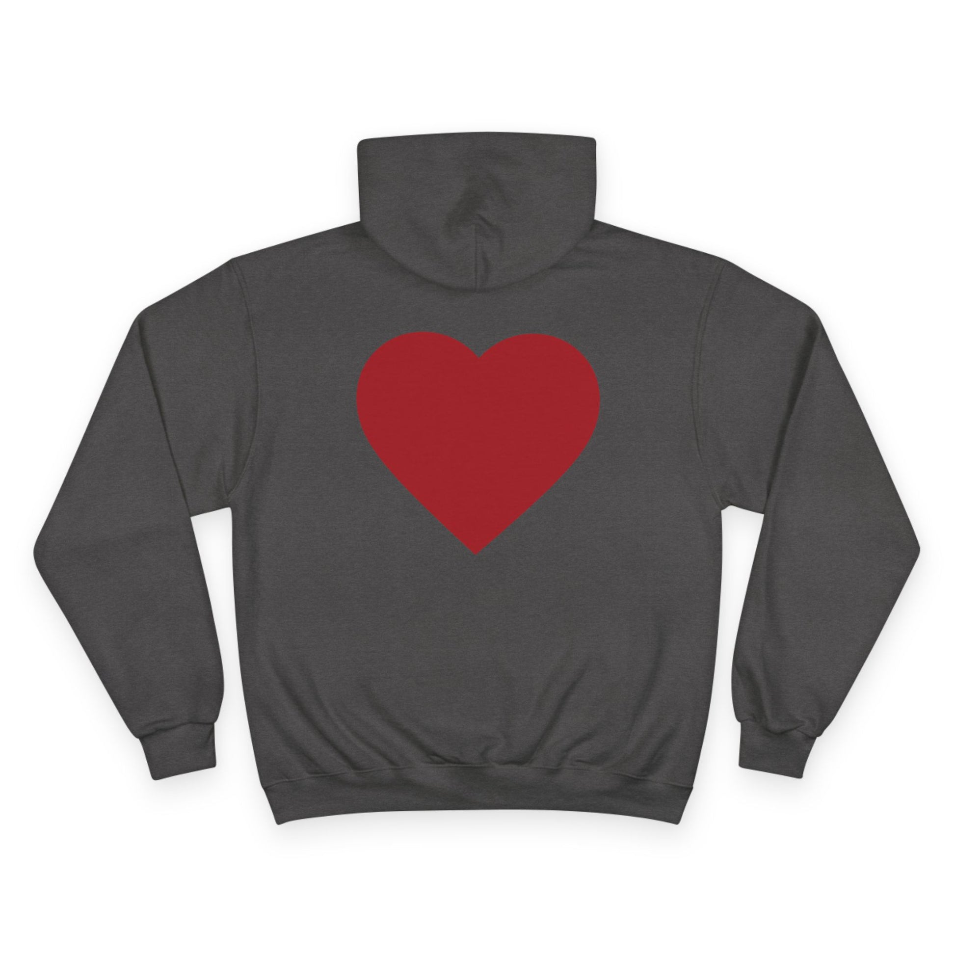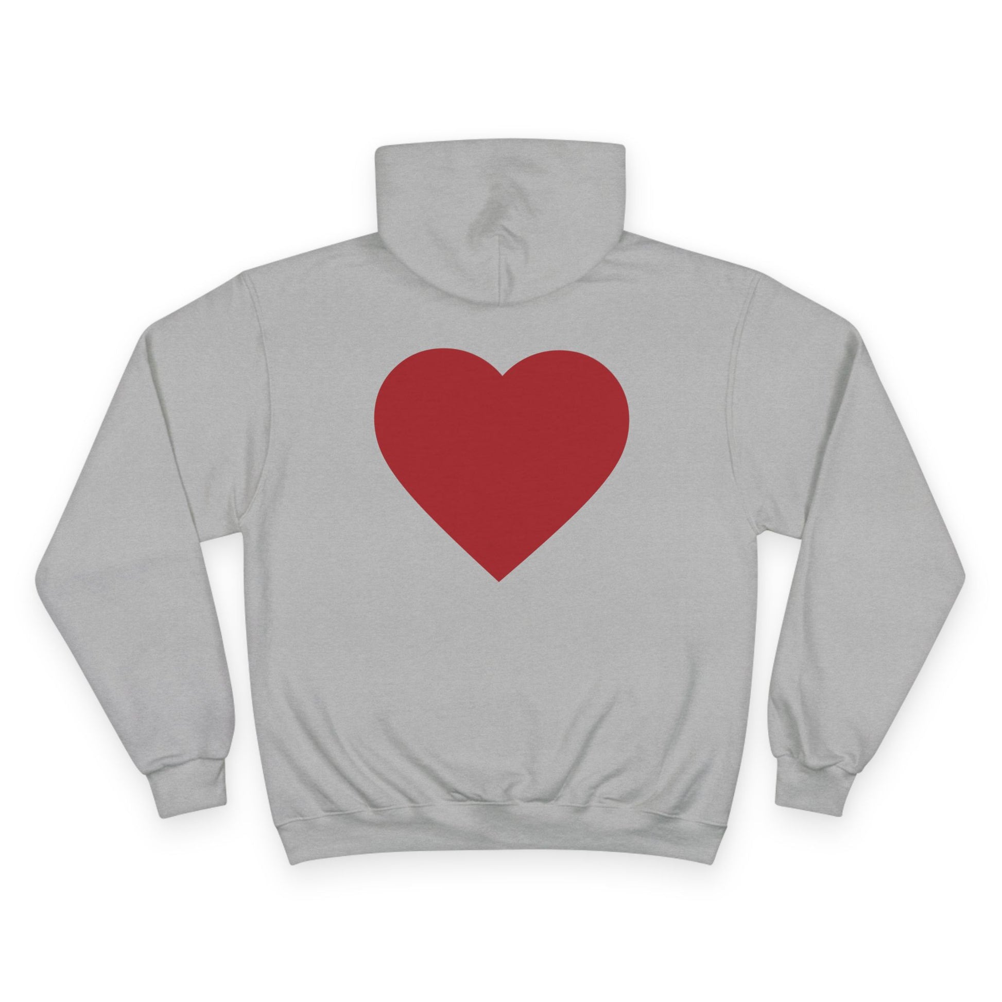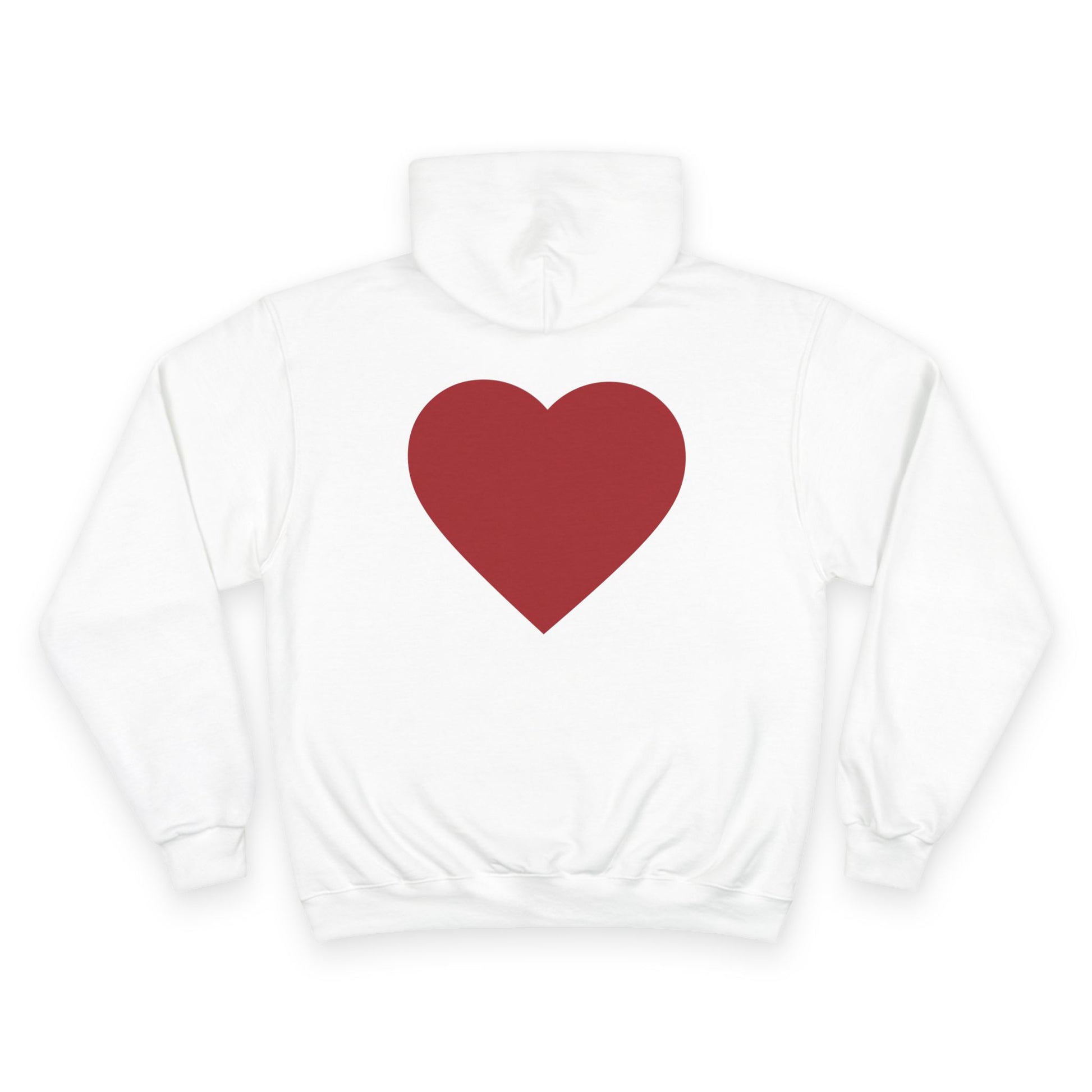 This cozy Champion hoodie wraps you in gentle confidence. The soft white fabric showcases a hand-lettered circular message across the chest and a warm, solid heart on the back — small statements that feel personal, not loud. Wear it on slow mornings with coffee, during late-night walks, or layered for low-key meetups. The relaxed fit and roomy kangaroo pocket invite you to tuck your hands in and breathe; the slightly heavyweight material keeps you comfortably warm without feeling bulky. It reads like an everyday companion: thoughtful, simple, and quietly bold.