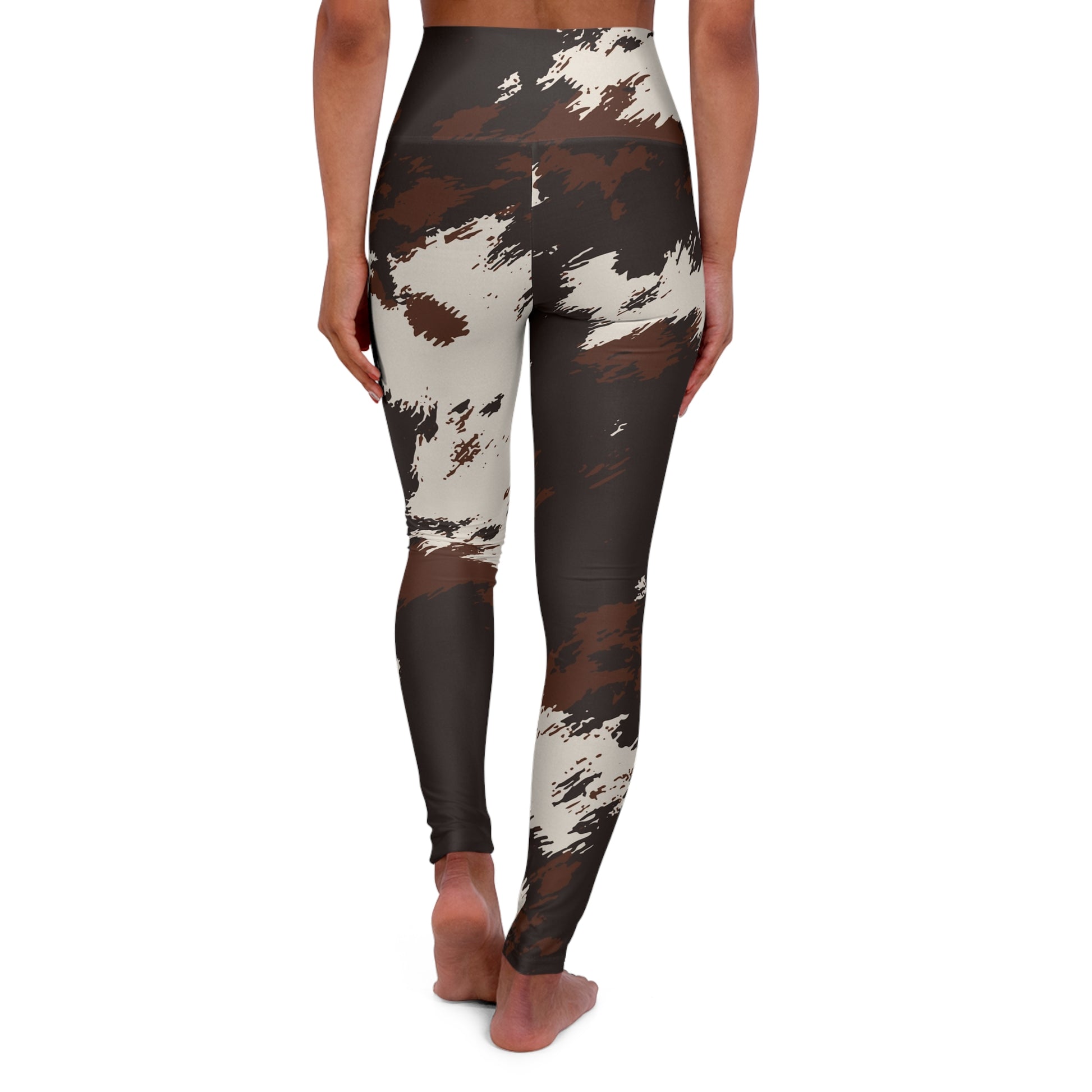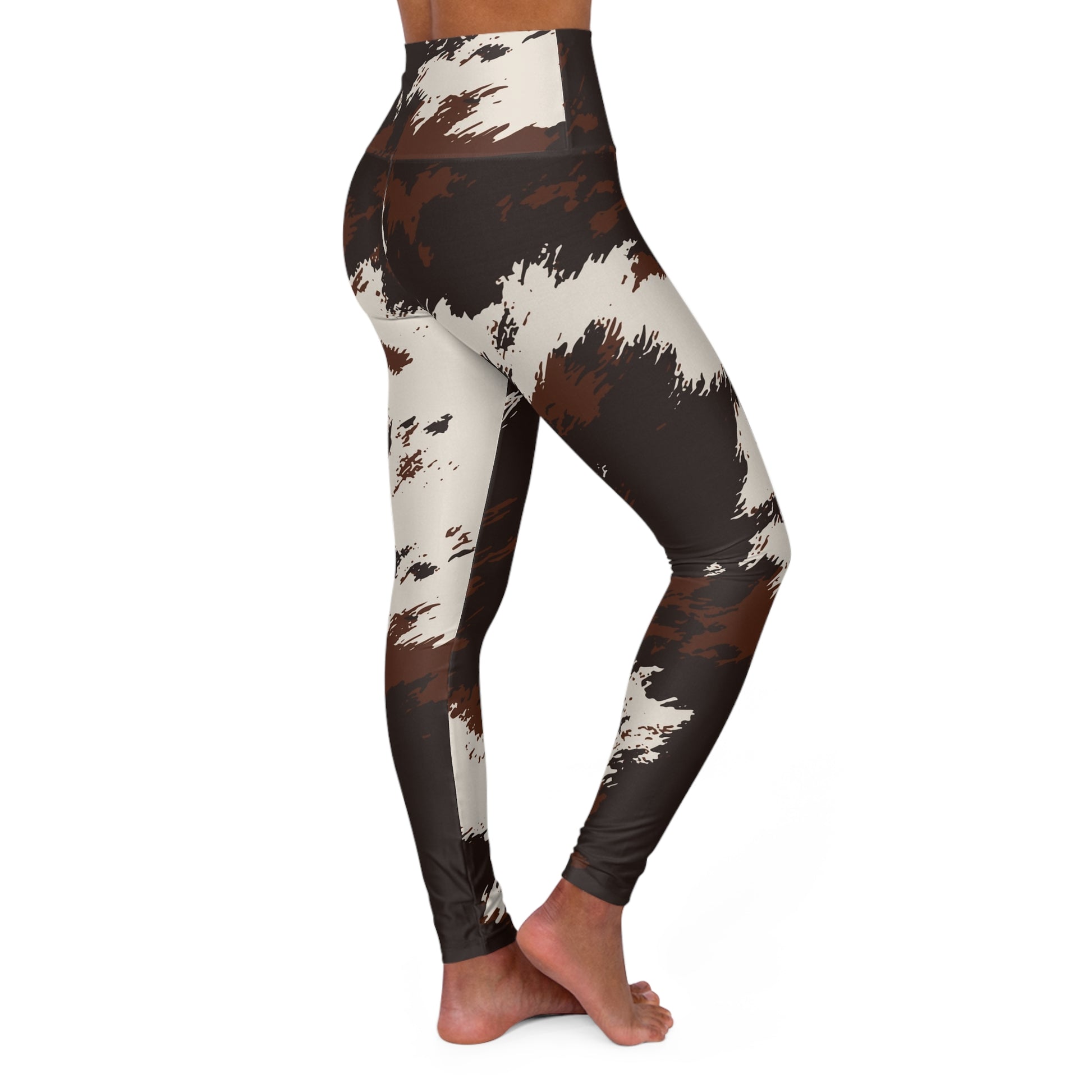 Cowhide Print High-Waist Yoga Leggings — Brown & Ivory All-Over Print